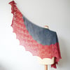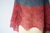 The shawl starts with a garter stitch tab. The body contains special shaping, which helps to avoid the “bump” in the upper edge of the shawl, so often present in crescent shawl designs. The lace in the border is knit on both right side and wrong side rows. The instructions for the border of the shawl are provided both fully charted and written out.
