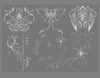 You will receive 12 PNGs. FULLY hand drawn. No AI used. Each tattoo is a unique piece, but you may edit, recolor, and mash multiple together to your heart's content.