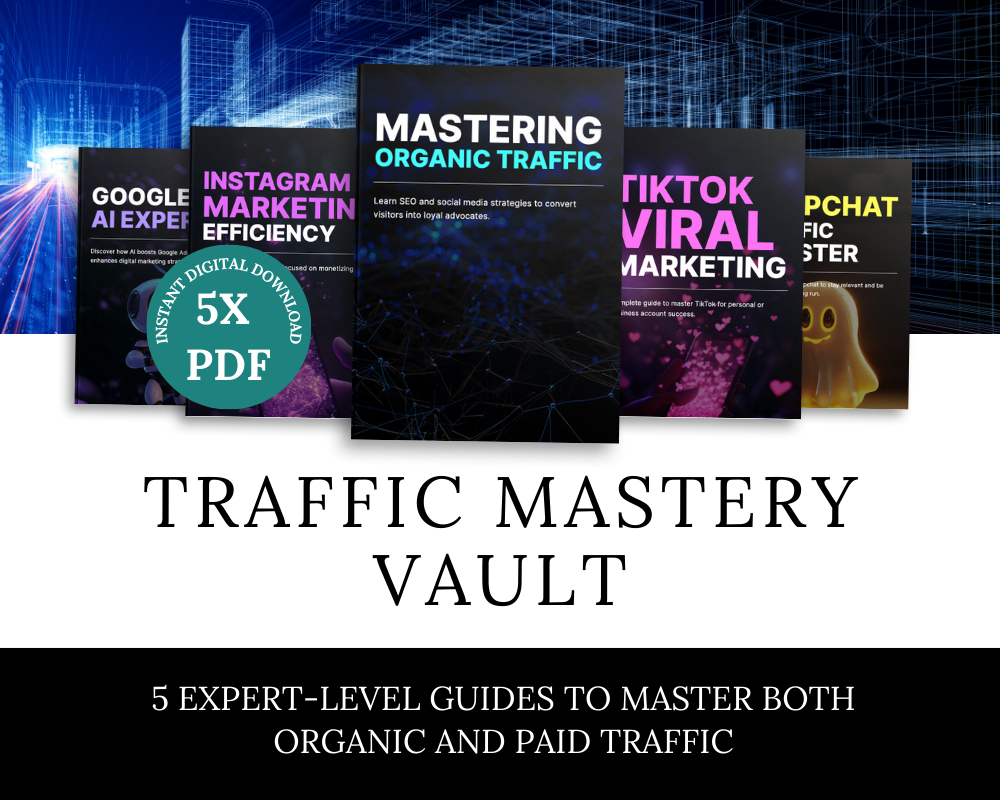 The Traffic Mastery Vault includes 5 in-depth guides that help you grow consistent funnel traffic using both free and paid methods—without showing your face or burning out.