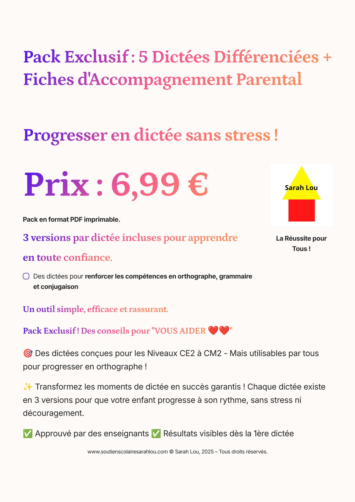✅ Des dictées pour renforcer les compétences en orthographe, grammaire et conjugaison