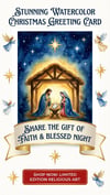 Nativity Scene Watercolor Christmas Greeting Card with Holy Family Blessed Night Religious Faith Message