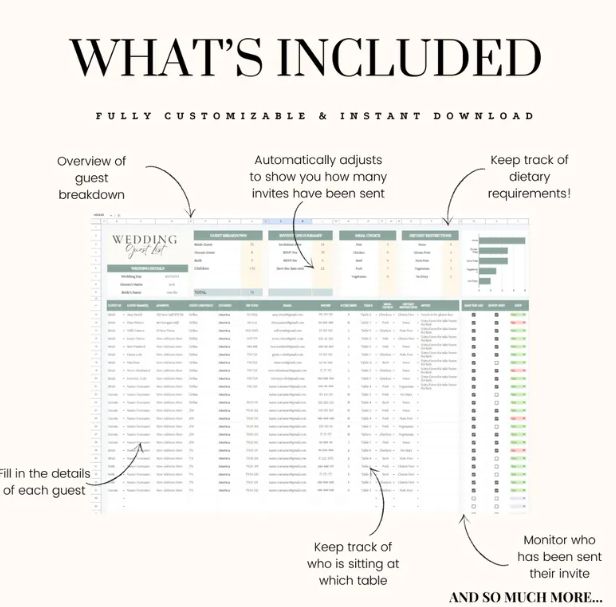 •Guest List Organizer: Track RSVPs, meal choices, and guest information effortlessly.