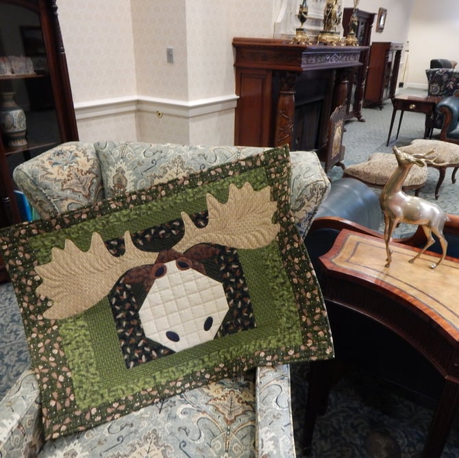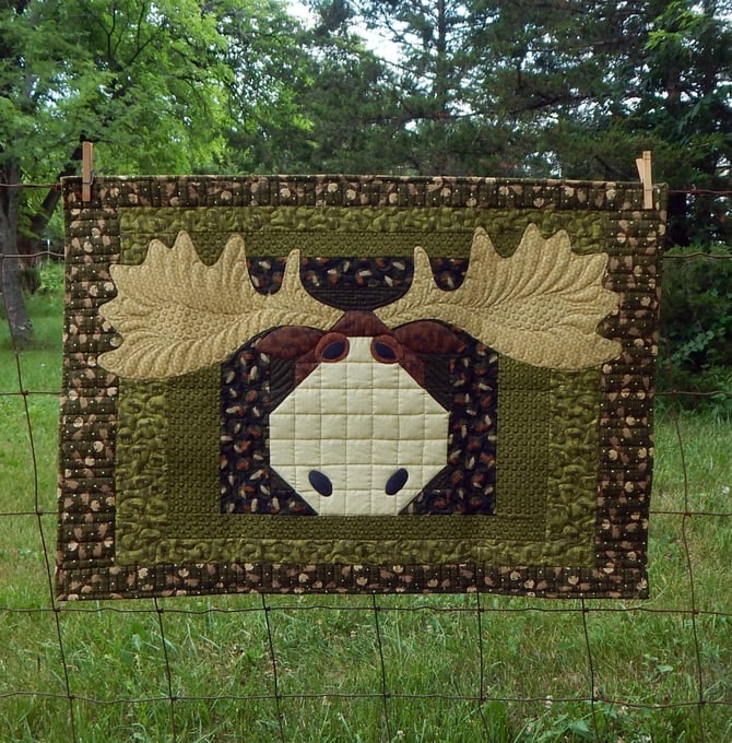 The quilt uses simple piecing techniques so there are no templates or fancy cutting required. The quilt is finished with a Quick Fuse appliqué and simple embroidery. The finished quilt measures 24” x 35”. The Instant Download pattern includes color layout graphics. There are 8 pages total.