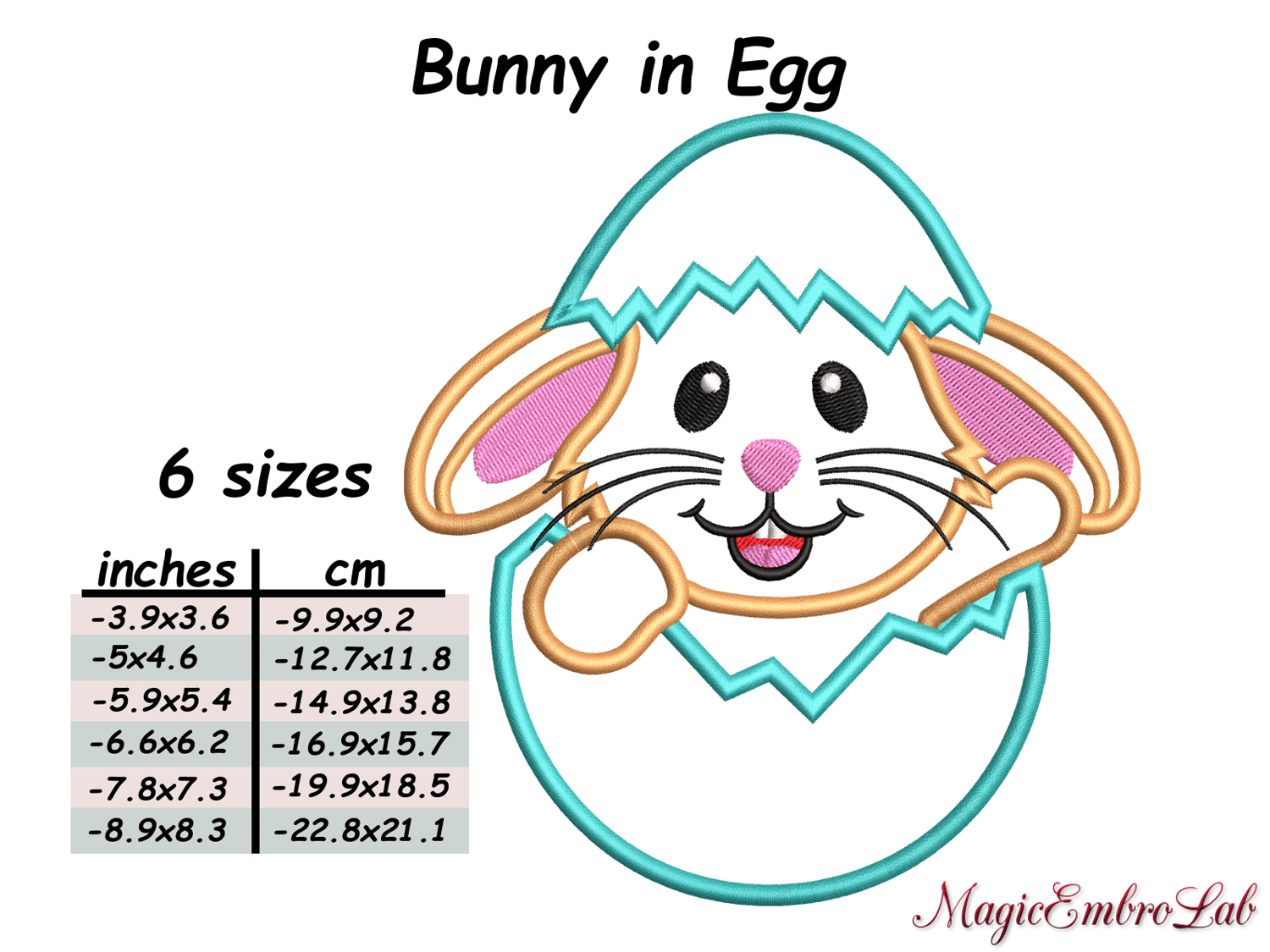 Bunny in Egg APPLIQUE, 6 sizes, Instant Download