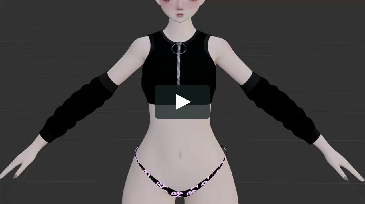 Model shown with blender shaders, similar look achievable with poiyomi shaders (free on his discord).