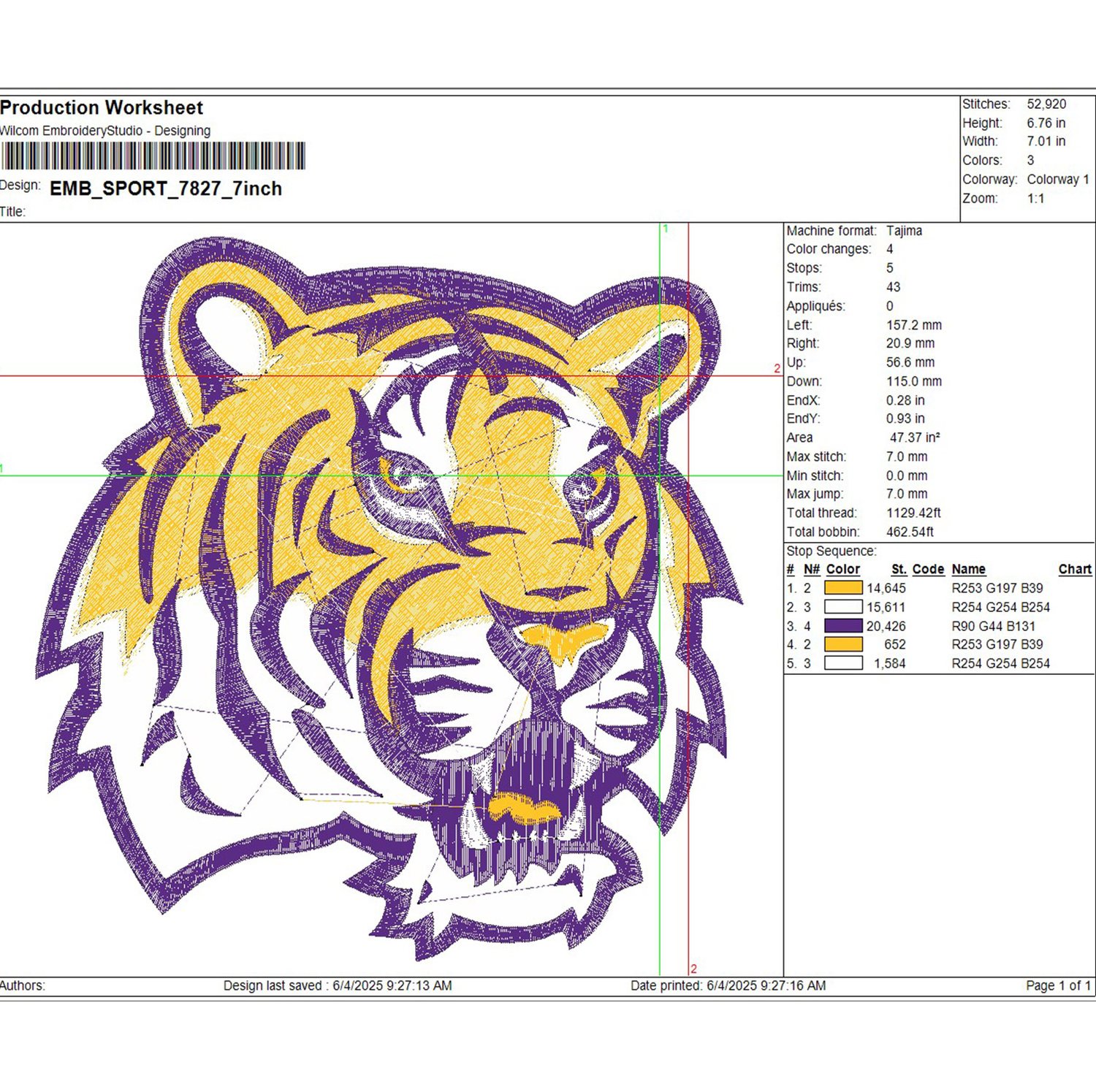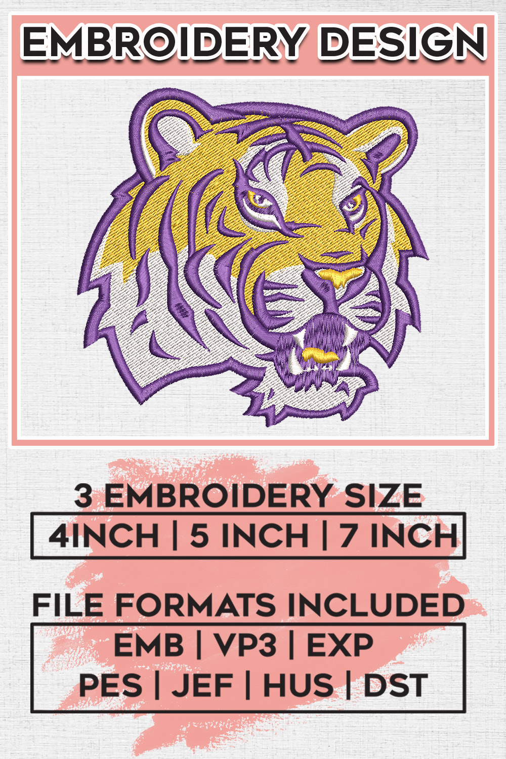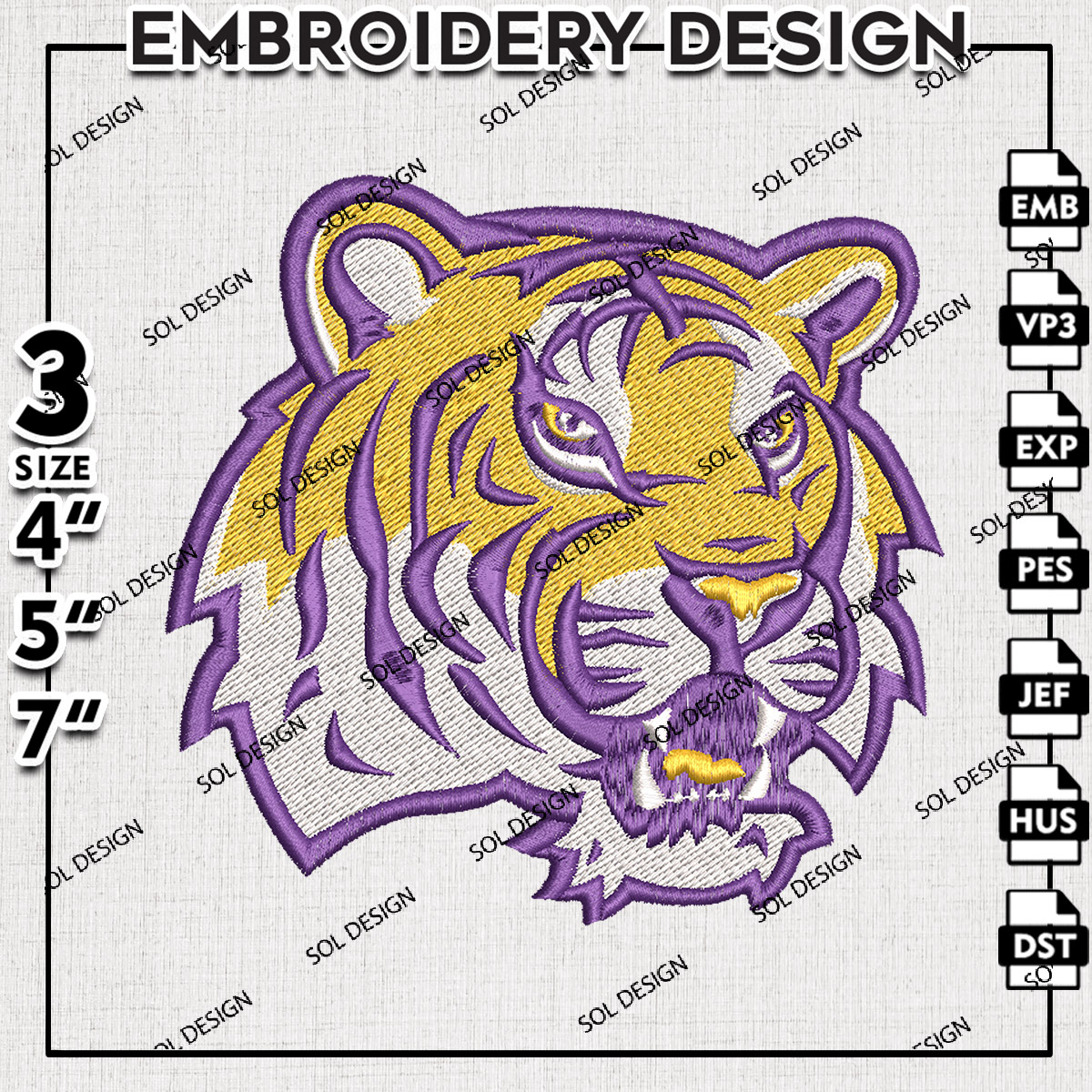 NCAA LSU Tigers Football Team Head Mascot Logo Embroidery Designs, NCAA LSU Tigers Machine Embroidery Files, NCAA Logo embroidery designs, NCAA LSU Logo, Digital Download