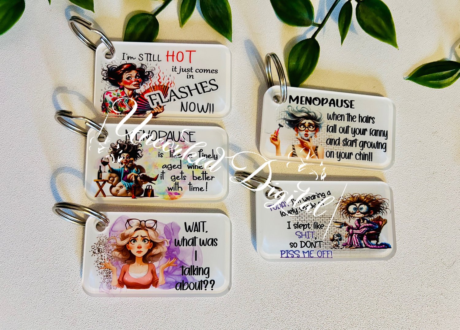 5 resizable menopause designs perfect for mugs, coasters, cushions, clothing etc, these have then been modified slightly to fit the fob keyrings from Woodform Crafts - Product - WC1376