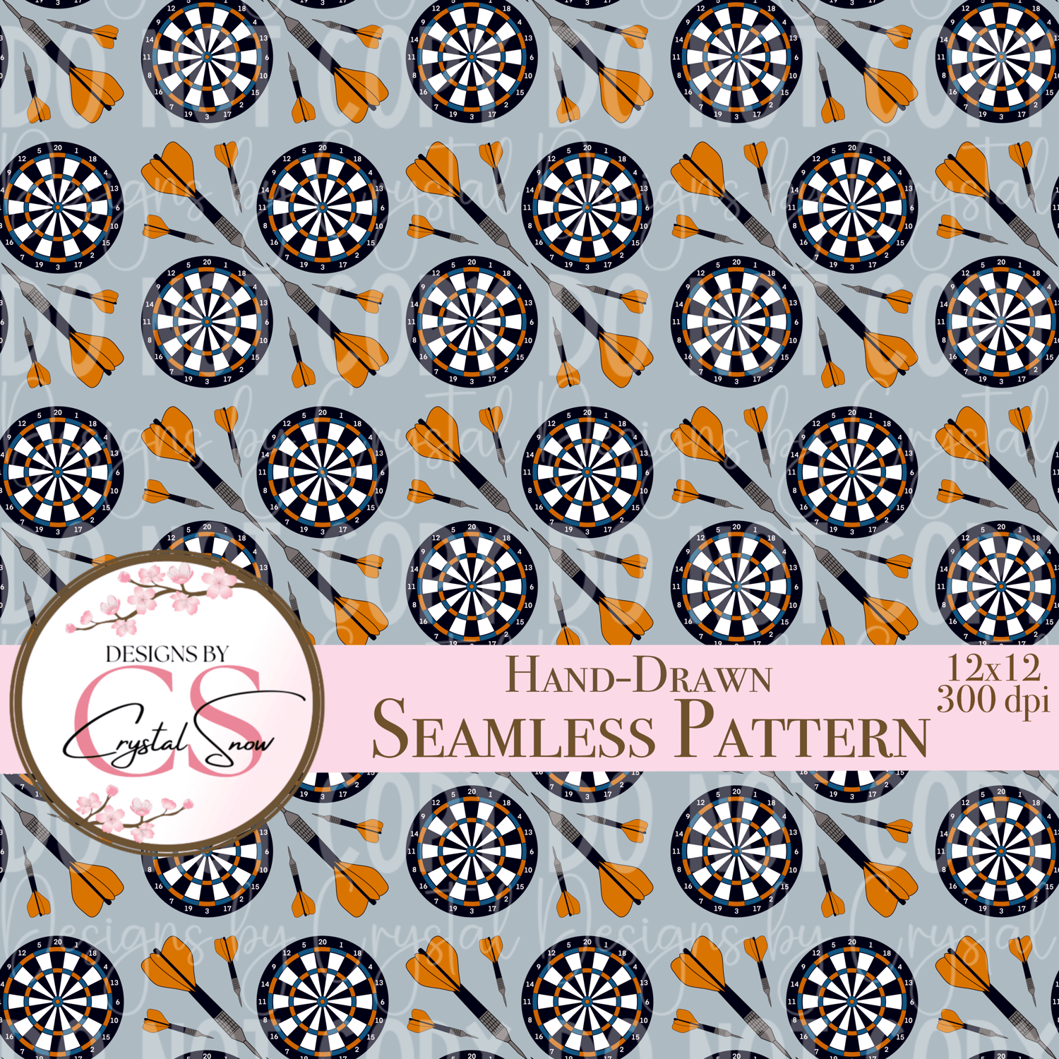 Dartboards & Darts Seamless Pattern | 12x12 Hand Drawn Game Night Tile | Orange Dart PNG for Crafts, Tumblers & Sports Designs