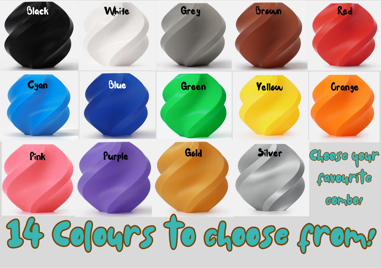 Silver, Cyan (Light Blue), Brown (£5.99)