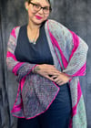 The shawl is knit at a loose gauge to create an airy fabric with lots of drape that still shows the beautiful ribbed brioche texture.