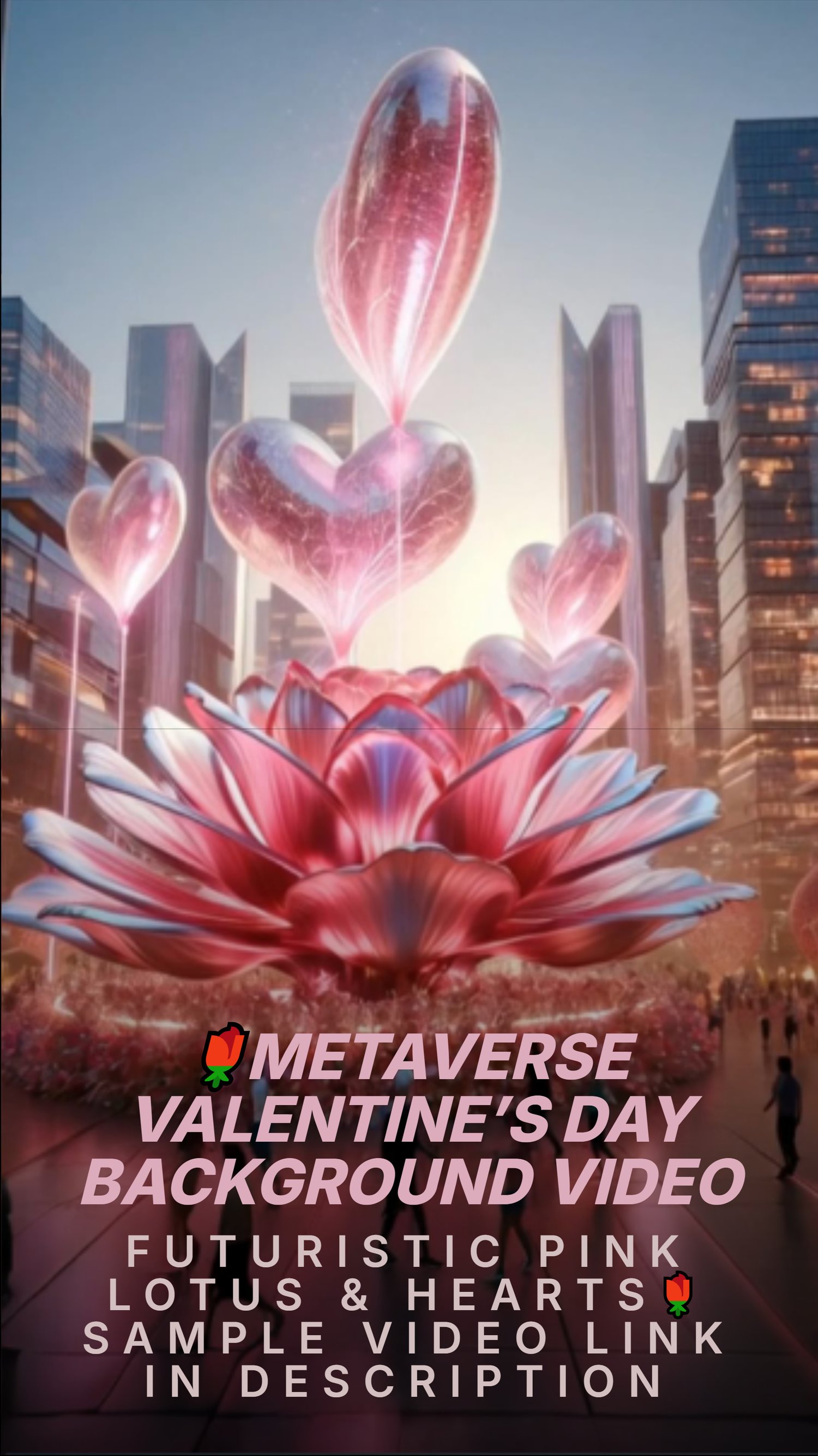 Metaverse Valentine’s Day Background Video | Futuristic Pink Lotus & Hearts | Full HD Vertical