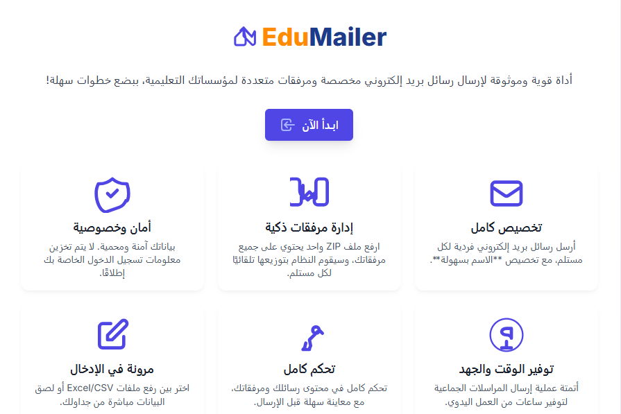 اليوم، واجعل كل رسالة أكثر احترافية وتأثير Edu Mailer امتلك ✨
