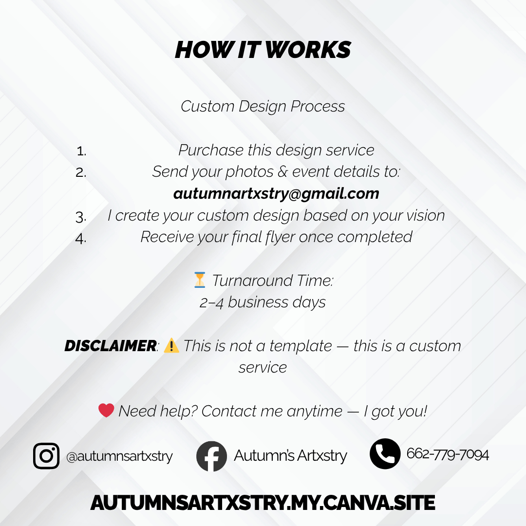 This is a custom design service, meaning your flyer will be fully created for you — no editing required.