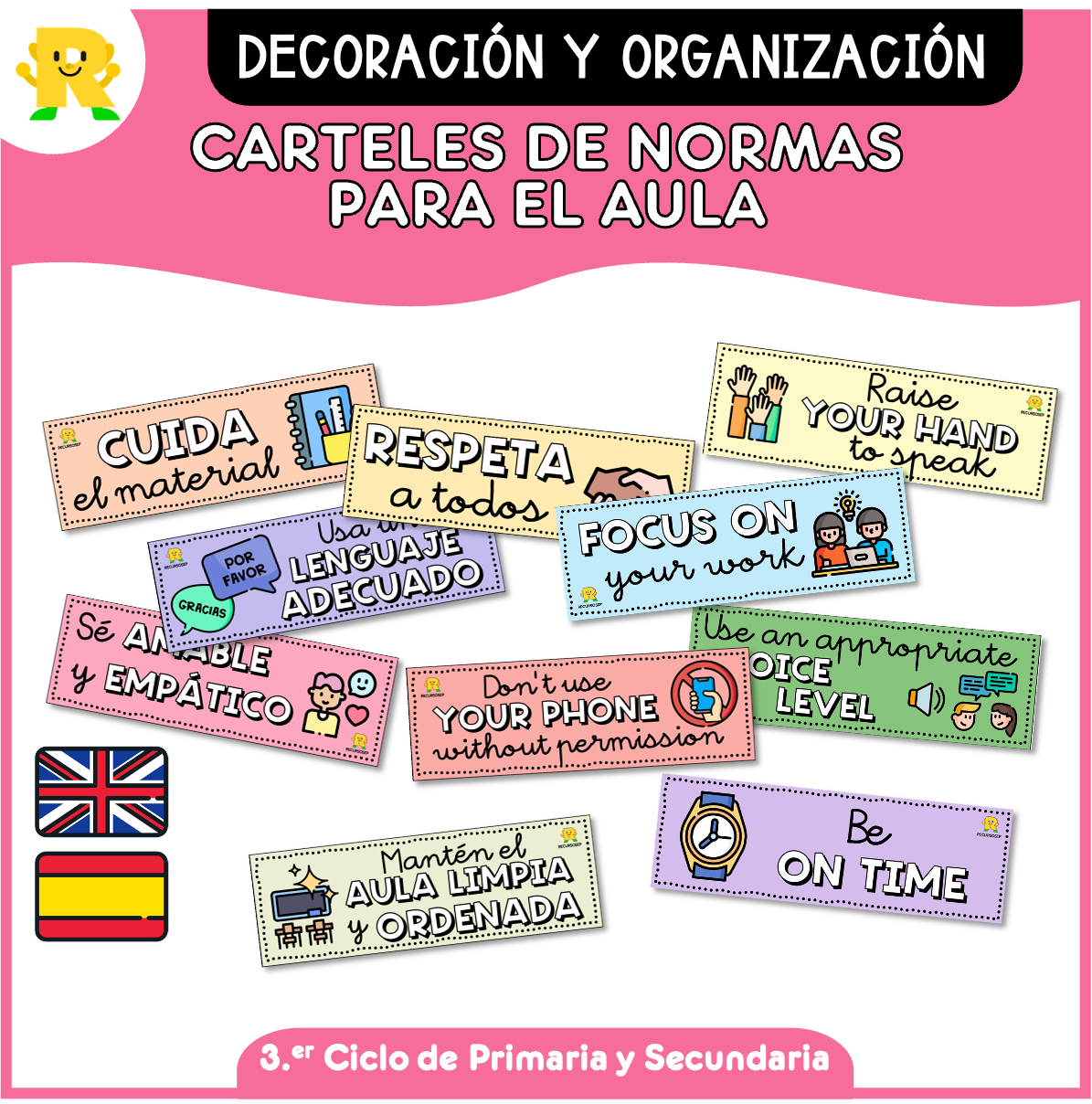 Normas para el aula – Carteles (Castellano/Inglés, PDF/EDITABLE)