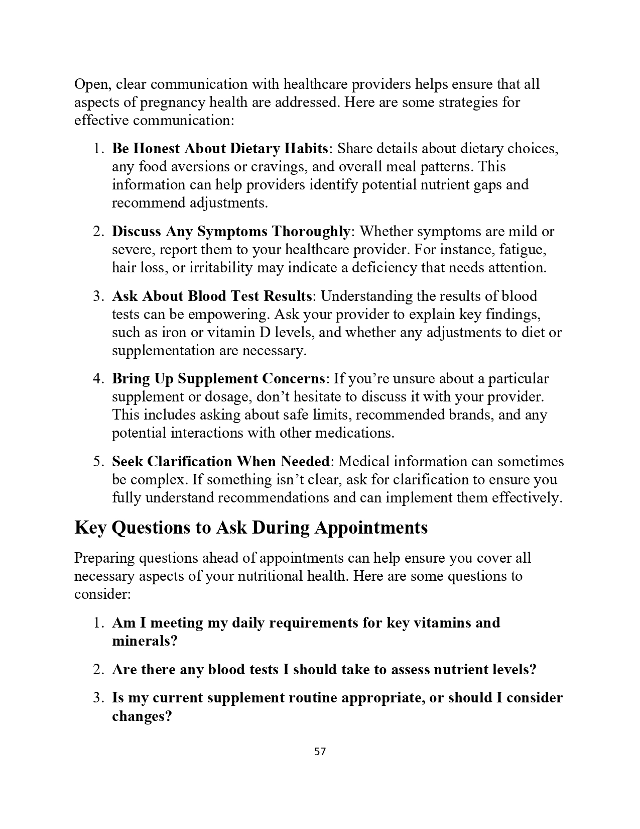- Expert Insights: Get advice on working with healthcare providers to monitor your nutritional needs and make informed choices for you and your baby.
