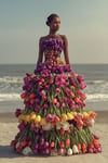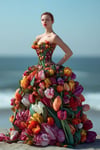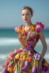 - Hyperreal rendering of tulip-inspired dresses with rich textures