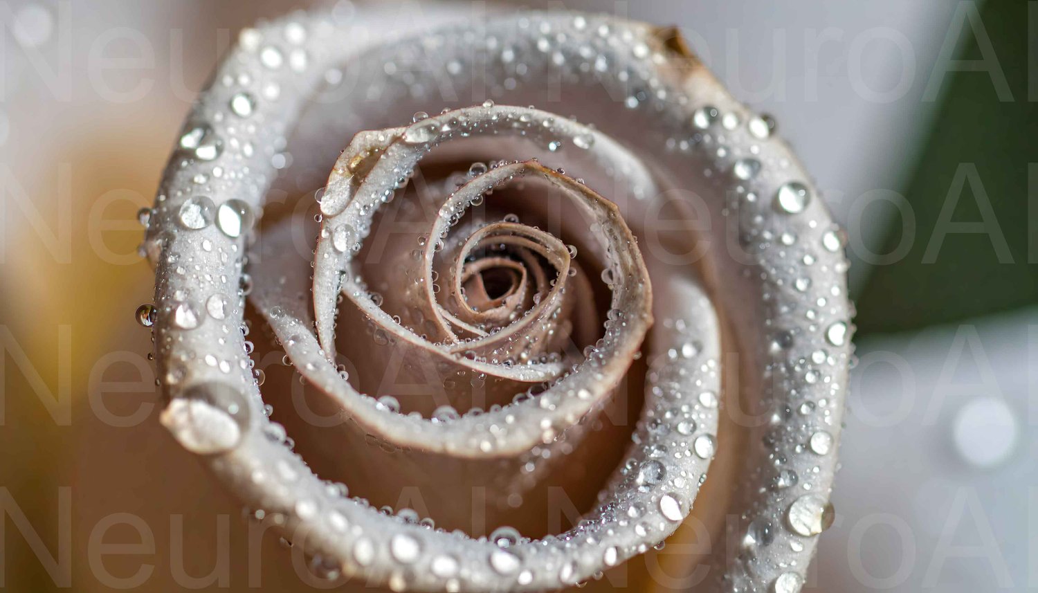 Experience the exquisite beauty of nature with this stunning macro view of a rose, its delicate petals kissed by sparkling water droplets. The soft focus and intricate details create a serene, luxurious atmosphere perfect for conveying freshness, purity, and natural elegance in design projects.