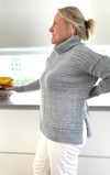 The Big Ease is worked seamlessly from the bottom up. Commencing with the back and front the broken ribbed hems are worked flat, separately, then they are joined after a deep split seam to commence the body working in the round.