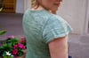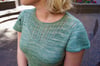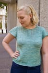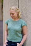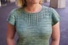 This top is knit from the bottom-up in the round until the divide for the front and back. Arm-hole shaping is worked simultaneously with the lace/cable motif. Short rows shape the shoulders and sleeves, which are picked up after connecting the front and back with a three-needle BO.