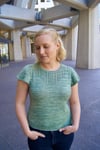 The FiDi Top, named after the Financial District of San Francisco, is the kind of warm-weather top you’ll want to wear everywhere, including the office. Delicate lace and cable details mimicking the high-rise buildings of the district frame a classic neckline. The fluttery sleeves drape elegantly on the shoulders, as you gaze up at the skyscrapers about town.