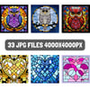 with 33 Files, JPG 4000x4000PX, in 300 DPI.