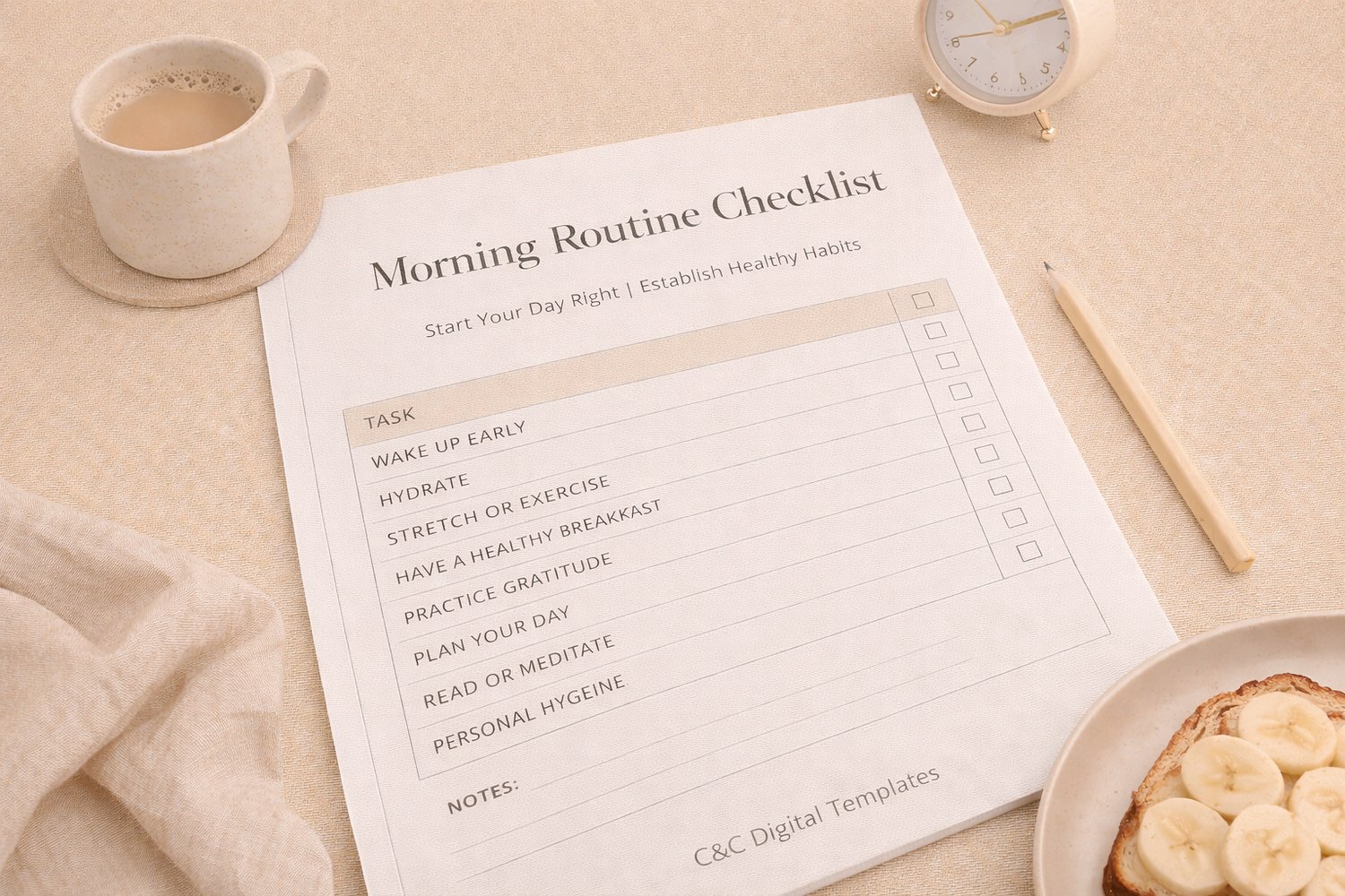 Build a calm and consistent morning routine with this simple checklist. Designed to support focus, energy, and intentional daily habits.