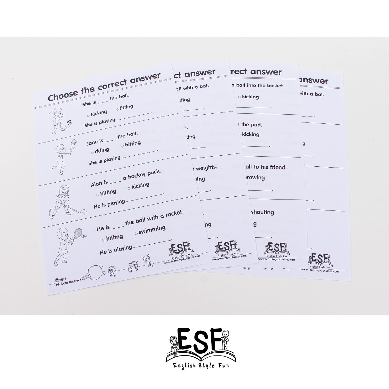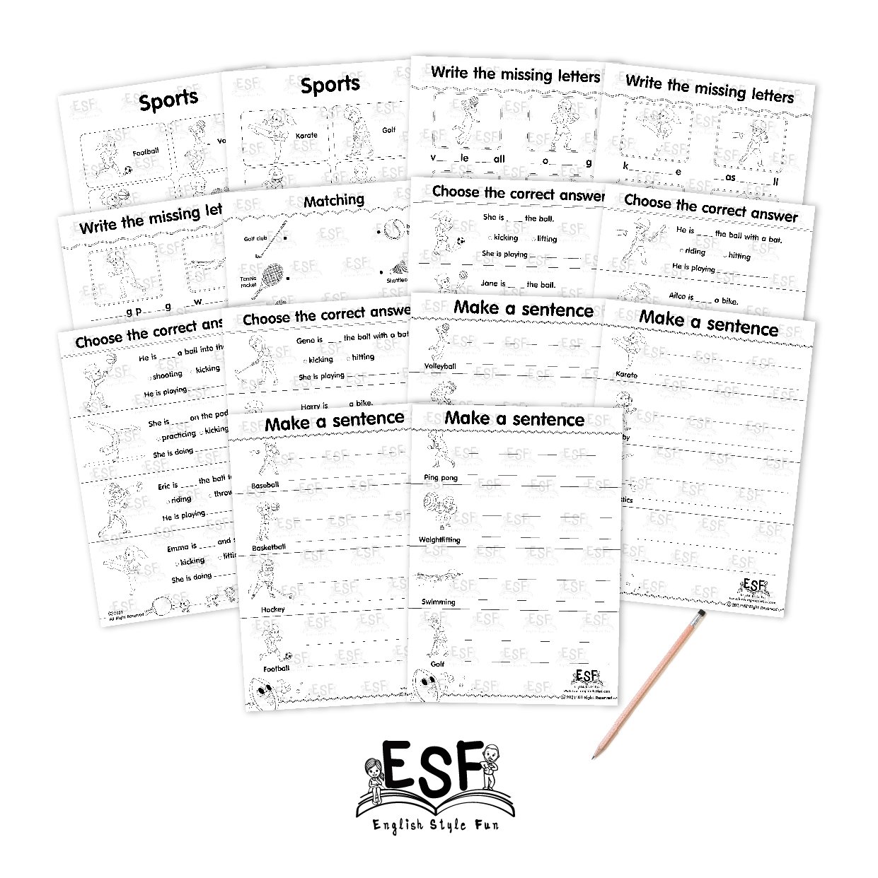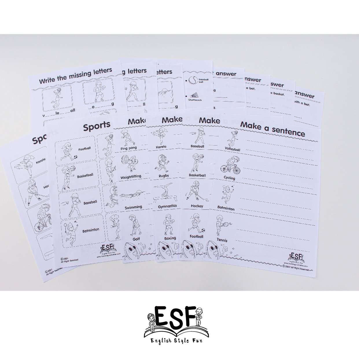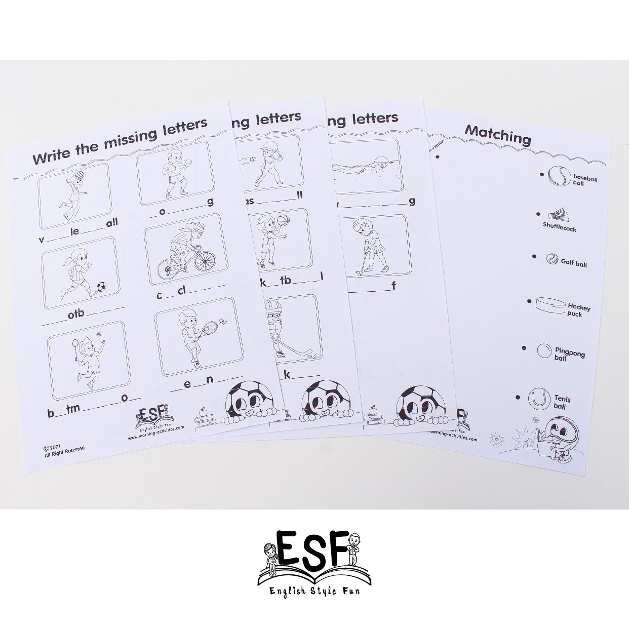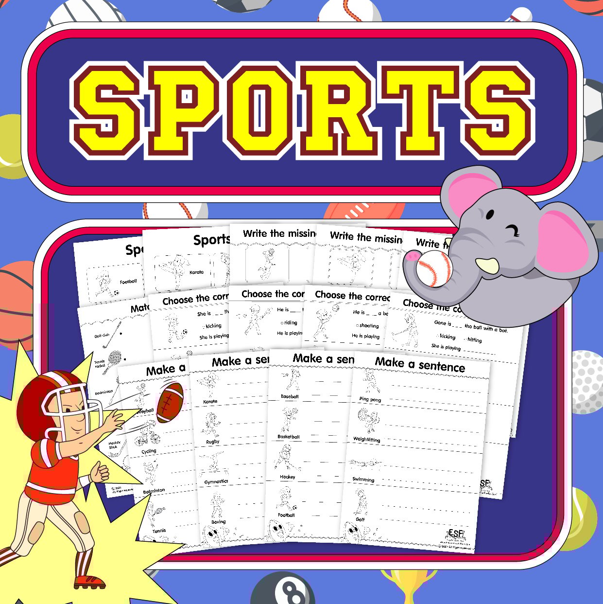 Section 1: 3 work sheets showing 16 different sports. Each sport has a picture to show the physical aspects of each. Under the picture is the name of the sport to better familiarize them with the word and looks of the sport.
