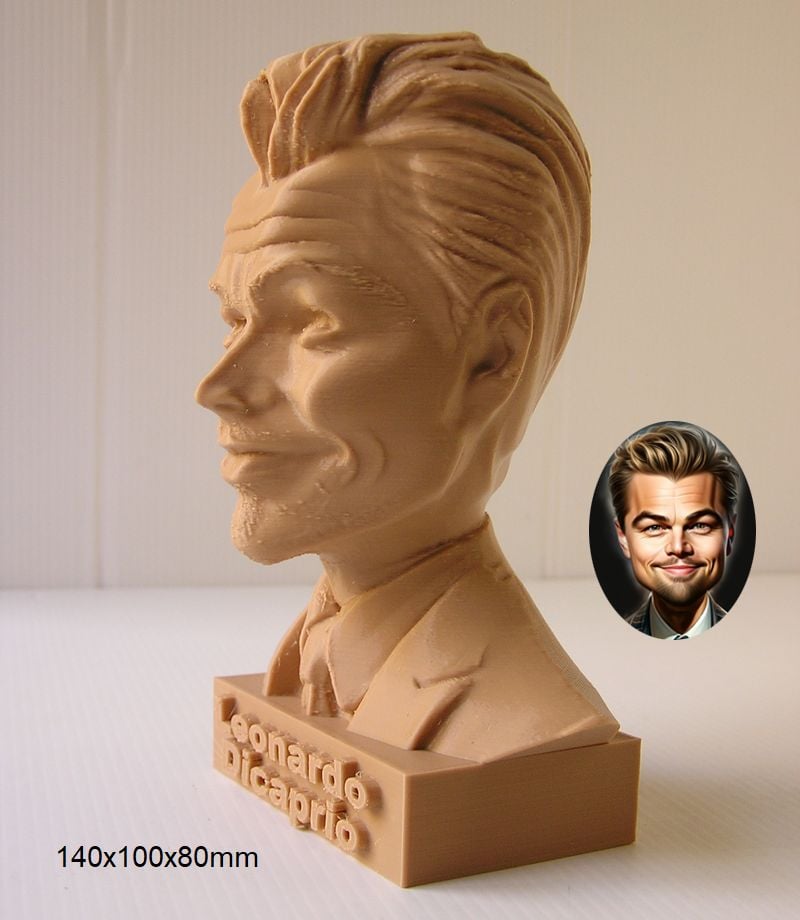 Bust statue of Leonardo di Caprio caricature, these STL and Gcode files have been created to be printed in various colors with any FDM type printer. The color changes have been made with the Elegoo Neptune 3 Pro printer, but they can be printed on any printer.