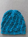 25 stitches and 36 rows over 10cm/4” twisted rib in the round, blocked