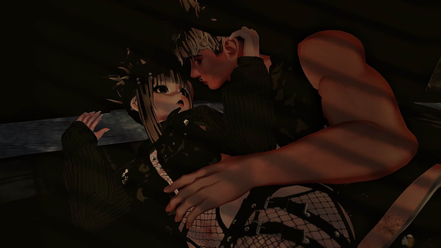 Head - 23Mink | VRCFT - Rue | Body - Akira | Dog set - Zinpia | Hair - Nessy! | Beard - Mystrix | Tattoos - YamiKitty | Turtleneck - YamuVR | Vest - Dummic | Tank Top - pinkbonbon | Cargo Pants - Eiji | Jeans - scoopdewoo | Beanie - Luny | Panties - PinkPuff | "Hotdog" - Scarlett