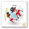 Becoming very popular lately are these 3-D peyote stitch balls, which come in all sizes and designs. One of a series of balls designed to match the Christmas Bells.