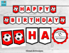 Digital Happy Birthday - Football Banner - Printable Red Black and White Soccer Birthday Banner - Instant Download