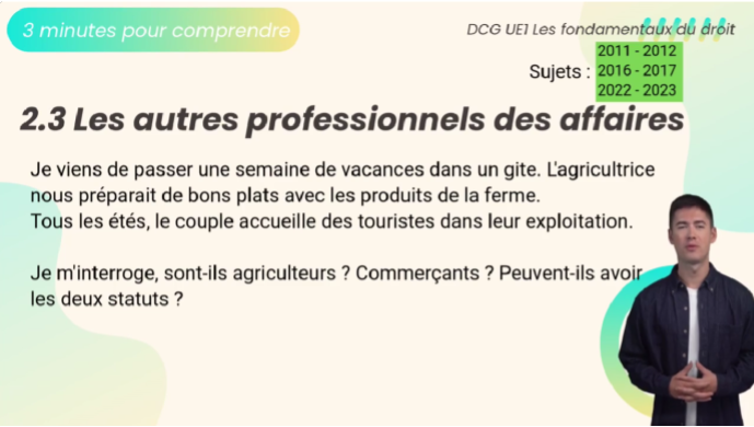 - Identifier et analyser les principes juridiques applicables aux catégories professionnelles suivantes : artisan, agriculteur, professionnel libéral.