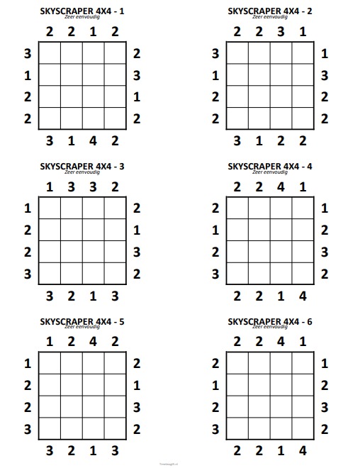 Dan is dit boek iets voor jou! Het bevat honderden Skyscrapers-puzzels, een Japanse uitvinding die je hersenen op de proef stelt.