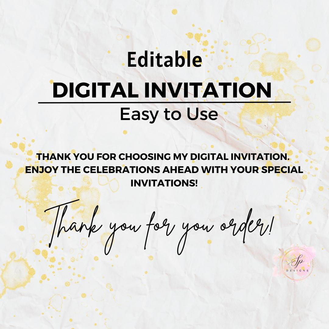 💌 This instant download invitation template is fully customizable—edit names, age, date, time, location, and RSVP using Canva or any compatible editing tool. Simply personalize, download, and send via email, text, or print at home!