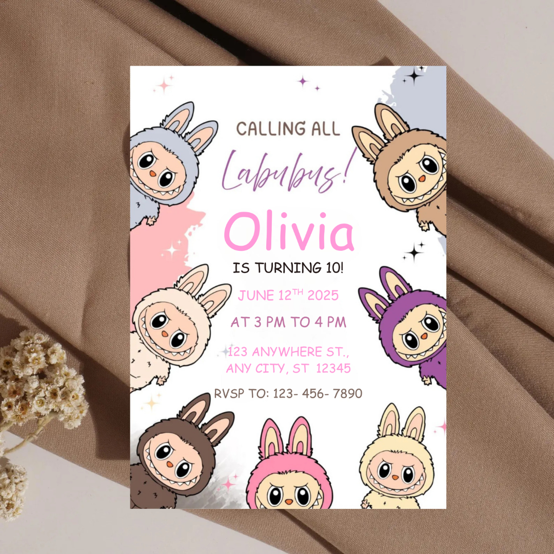 🎈 Throw the cutest birthday party ever with this unique Labubu invitation! Click Buy Now to grab your editable template and get party-ready in minutes!