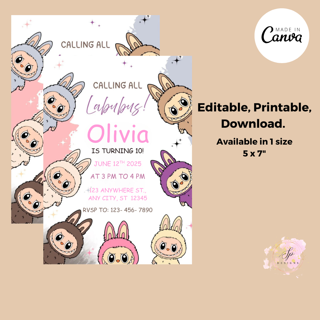 Labubu Birthday Party Invitation, Labubu Birthday Party, Invitation Template, Printable Invite, Canva Editable Template, Instant Download