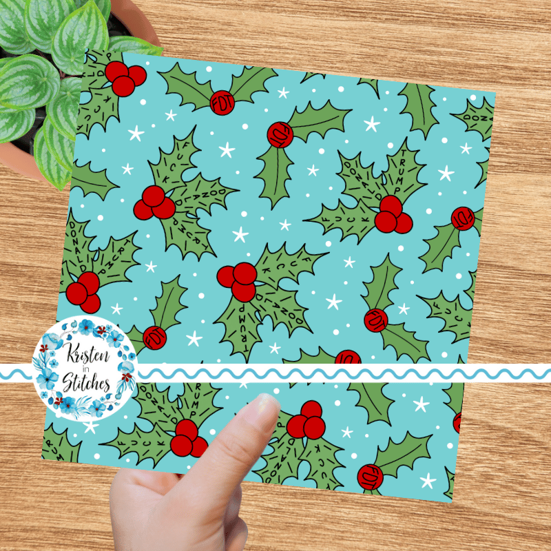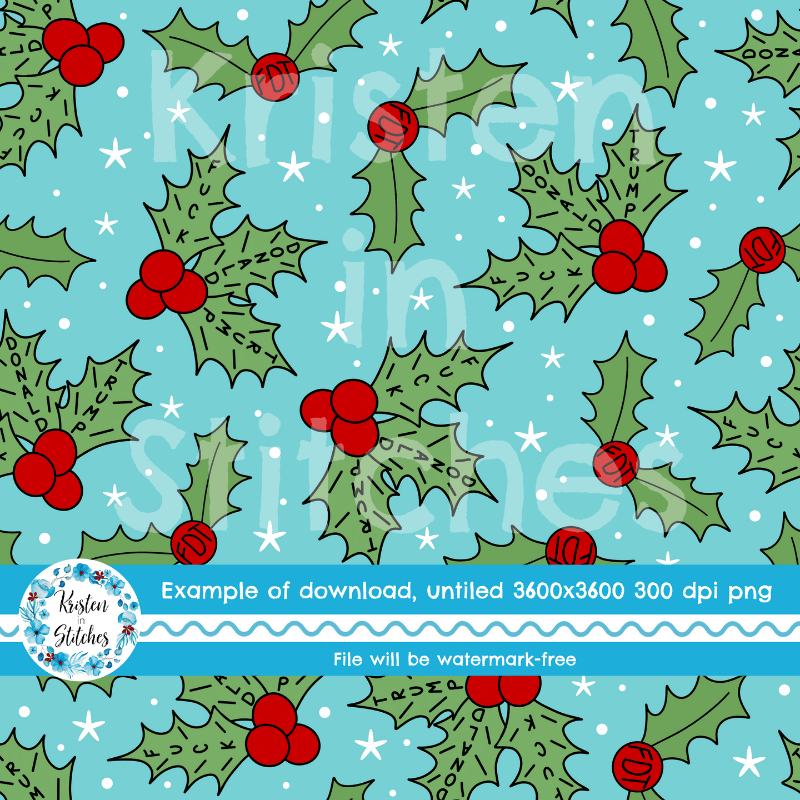 Subtle Winter Holly Berries Fuck Trump Sarcastic FDT Seamless Pattern, Christmas