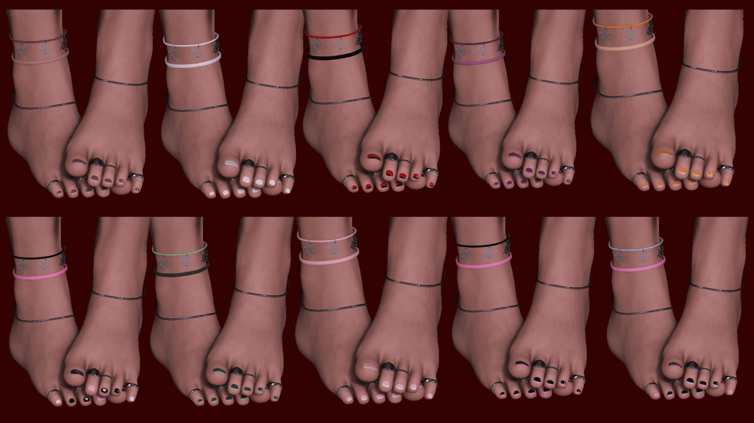 - Nails are dyeable through coloursets on Long Latex (Row 4) and Cat feet (Row 2).
