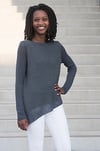 LANTANA is knit in the round from the bottom up with an asymmetrical hem with 1 strand of Koan. One strand of Lunar is joined for the rest of the body. Sleeves are knit flat with 1 strand of Koan and then set in and seamed.