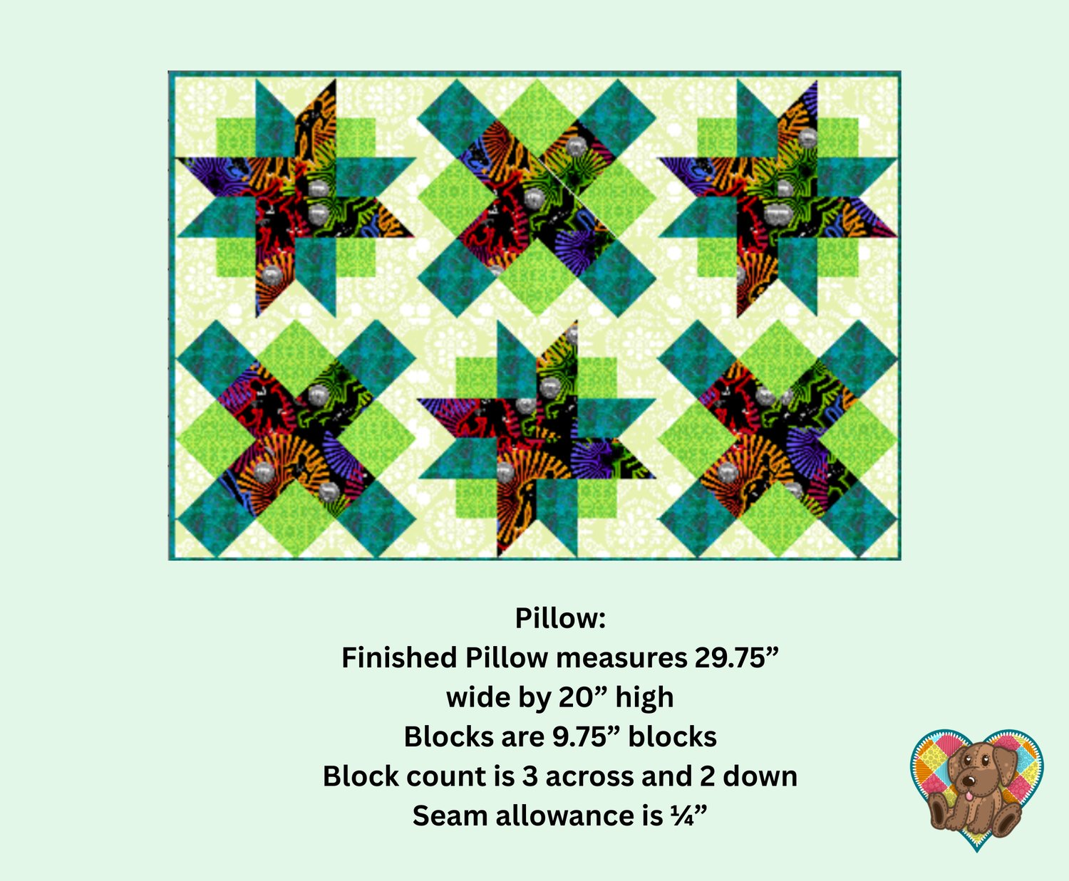 Pillow sham quilt front is 20" X 29.75" Blocks are traditional pieced blocks.