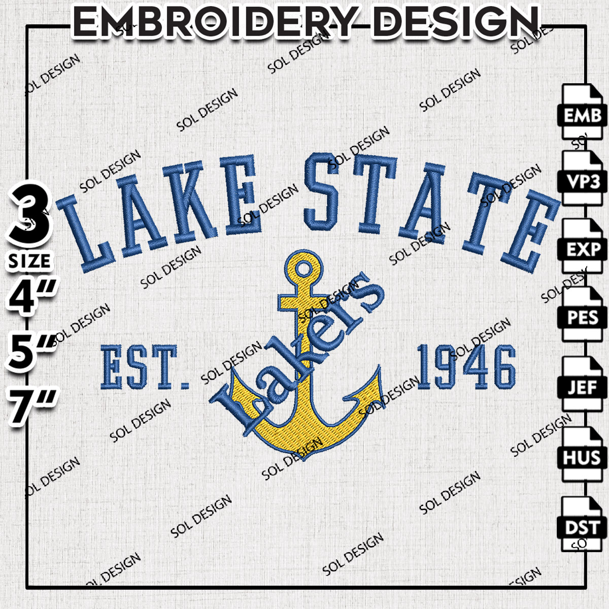 Lake Superior State Lakers Football Team Est Logo Embroidery Designs, NCAA Lake Superior State Lakers Machine Embroidery Files, NCAA Logo embroidery designs, Ncaa Lakers Logo, Digital Download