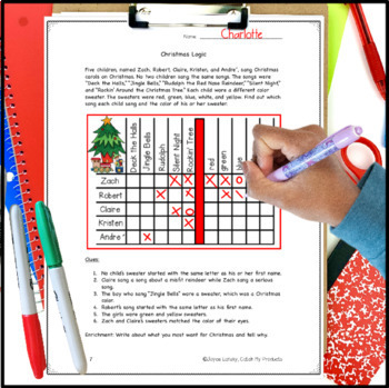 What better way to add holiday cheer to your class while making kids think? Challenge your students, and improve their critical thinking skills, with these logic puzzles. These critical thinking puzzles are perfect for Gifted students and High Achievers and can be used as a morning warmup activity, daily challenge, math center, or for early finishers. The kids love these logic puzzles and will beg for more!