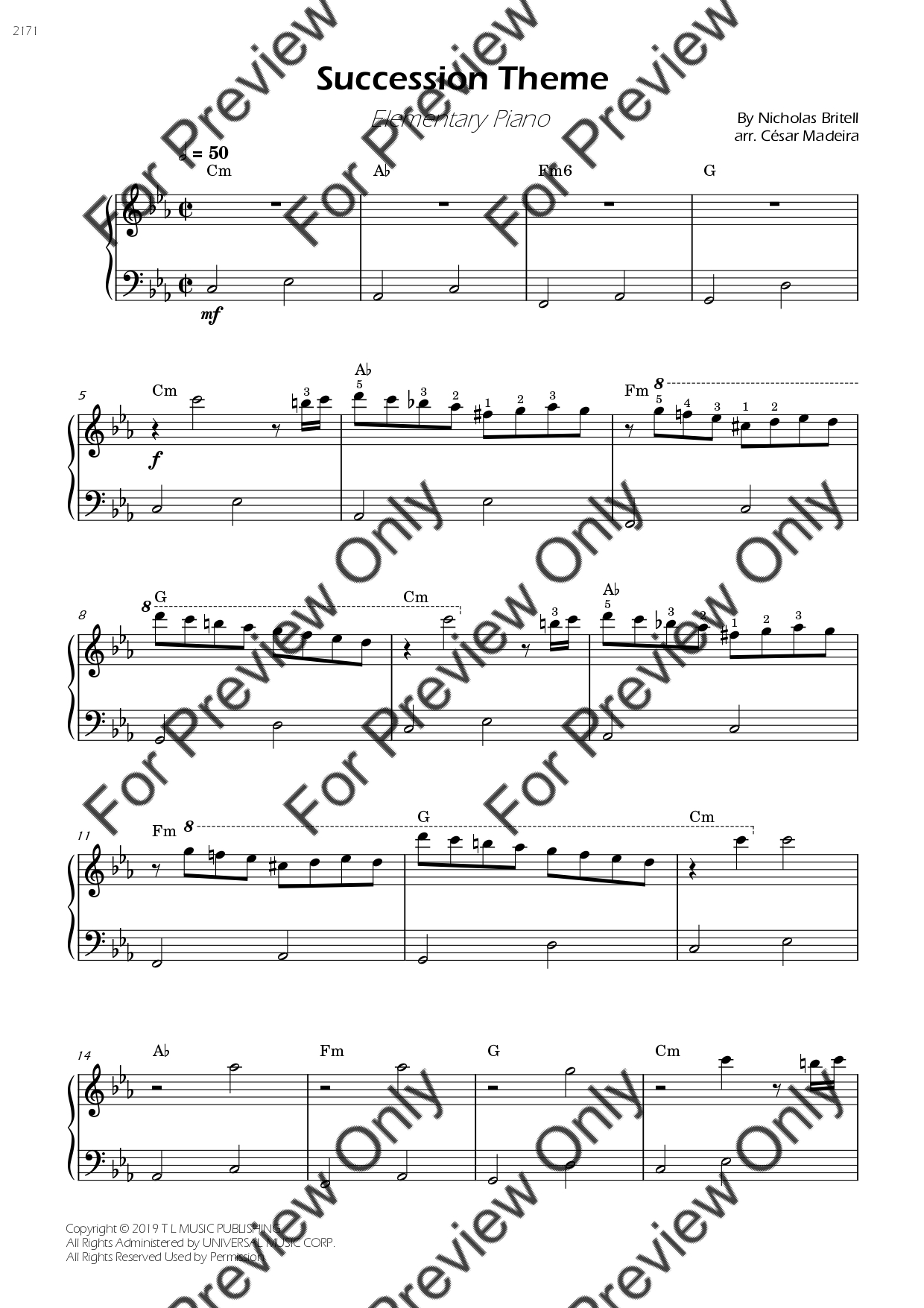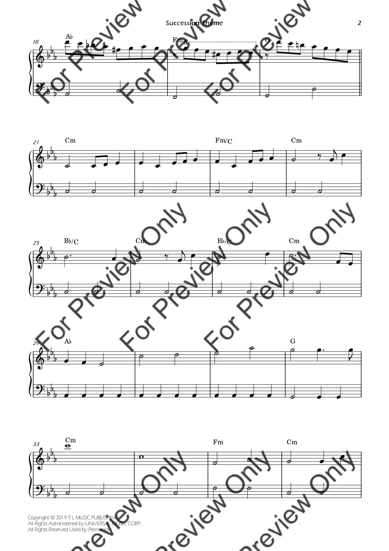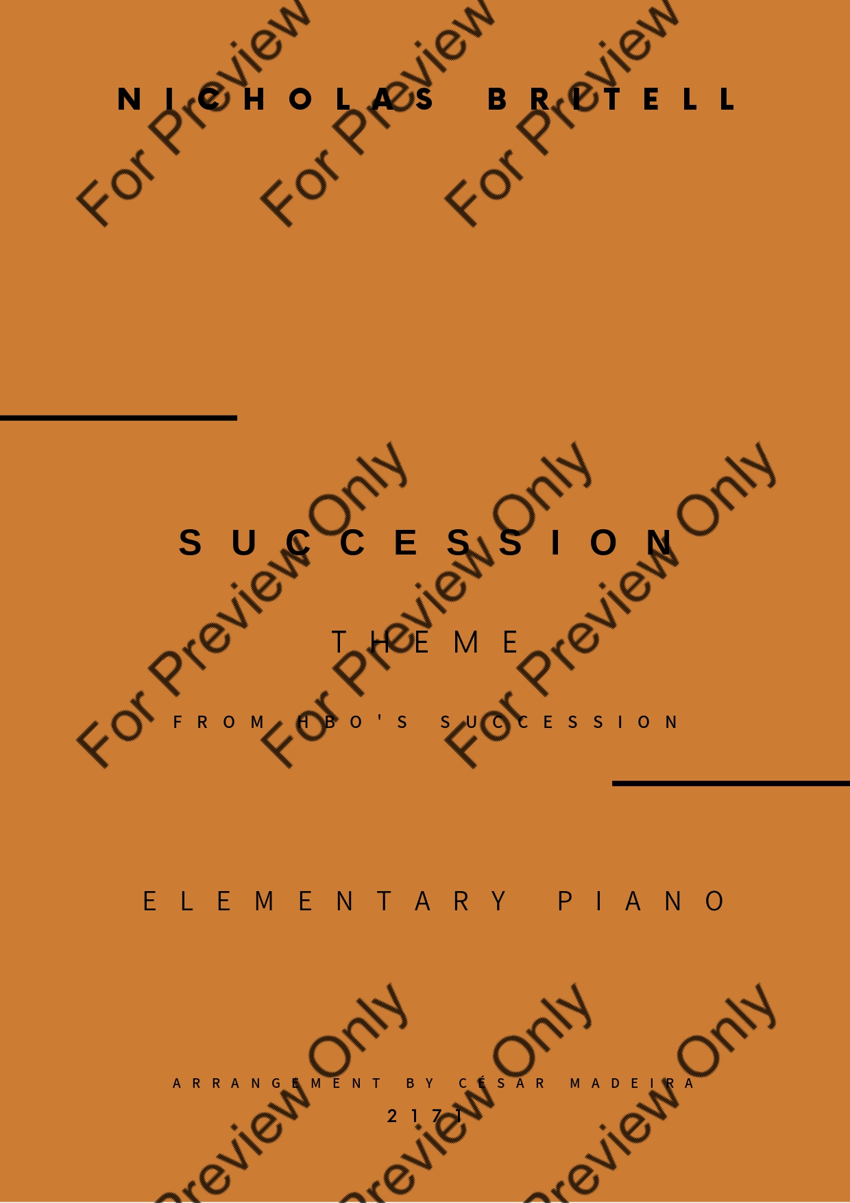 Succession Theme from HBO's Succession by Nicholas Britell. Arrangement for Elementary/Very Easy Piano. With Full Score. Have fun!