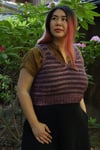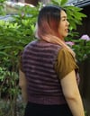 I love a good vest. I also love easy textures. By mixing basic stitch patterns like ribbing, garter stitch, and stockinette stitch with smooth and fuzzy yarns, you can have the best of all worlds. Easy to work up, yet it changes both st patterns and textures often enough to keep it interesting. Plus, there’s the fun of mixing and matching colors which means each one you make can have totally different vibes.