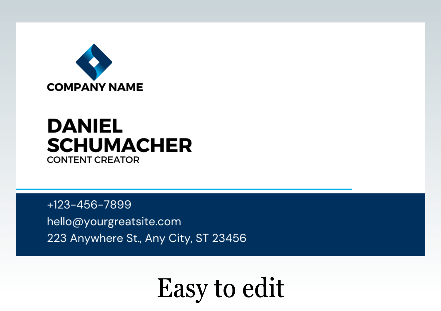 Download our FREE instant modern photo light and dark blue business card template today and make a lasting impression on your clients and customers!