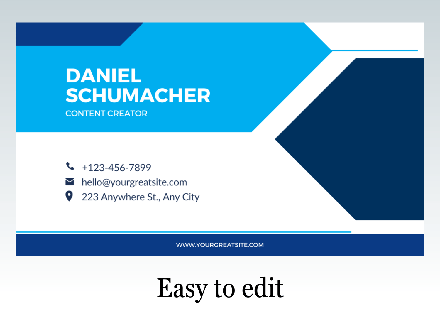 If you are looking for a stylish, FREE, unique, and elegant business card design template, Look no further than our blue geometric content creator business card! This card features a modern and stylish design with two unique reverse company detail templates. You can easily customize this card to fit your needs and make a great impression on potential clients!