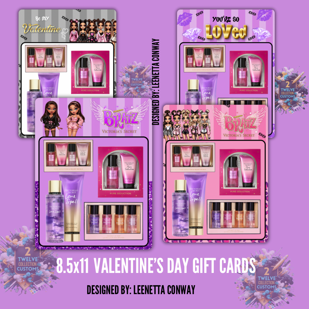 Bratz X Victoria Secret Valentine’s day Gift Card Canva Template 4 Pack