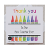 Be sure to show your teacher some appreciation with this cute crayon design and displaying the greeting 'Thank you to the best teacher ever'