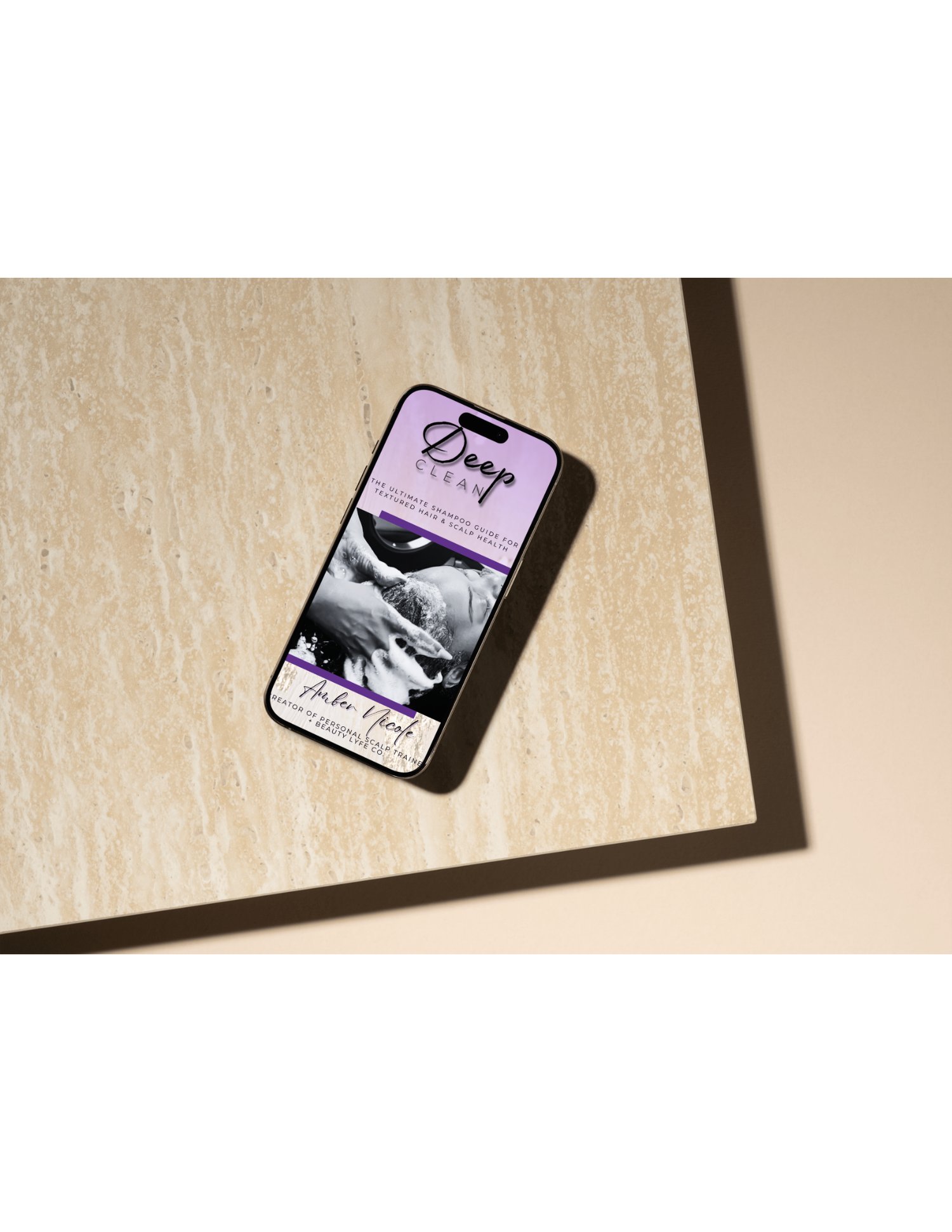 The Deep Clean™ Method is a 14-chapter guide designed to help you understand your scalp, reset your routine, and finally create lasting results. Inside, I walk you through the exact steps, truths, and techniques I use behind the chair and in my own recovery journey, from detoxing and shampoo selection to hydration, oil balance, and real scalp healing.